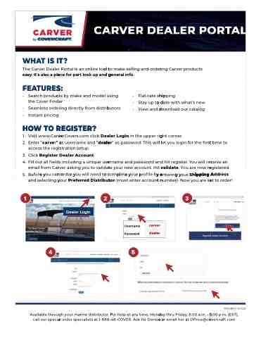 WHAT IS IT? The Carver Dealer Portal is an online tool to make selling and ordering Carver products