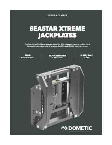 The Dometic SeaStar Xtreme Jackplate is rated for 400 horsepower gasoline engines and is designed to maximize engine tilt when used with Dometic SeaStar steering cylinders.