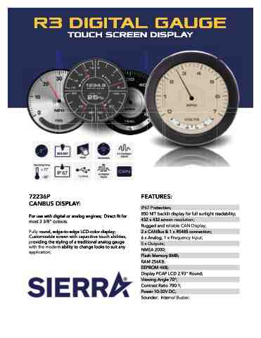 Fully round, edge-to-edge LCD-color display; Customizable screen with capacitive touch abilities, providing the styling of a traditional analog gauge with the modern ability to change looks to suit any application;