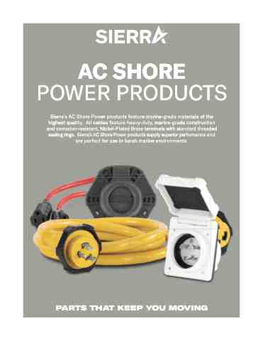 Sierra’s AC Shore Power products feature marine-grade materials of the highest quality. All cables feature heavy-duty, marine-grade construction and corrosion-resistant, Nickel-Plated Brass terminals with standard threaded sealingrings. Sierra’sACShorePowerproductssupplysuperiorperformanceand are perfect for use in harsh marine environments.