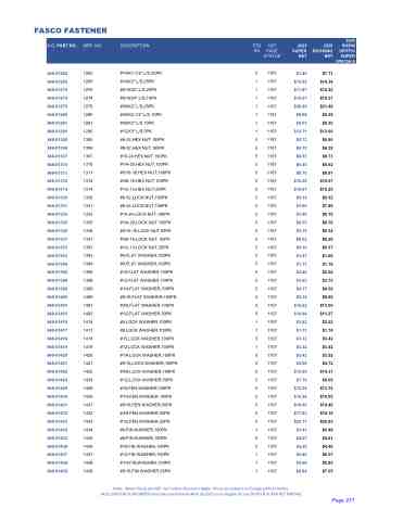 1262 #1/4X1-1/2'',L/S,25PK 1265 #1/4X3'',L/S,25PK 1270 #5/16X2'',L/S,25PK 1274 #5/16X4'',L/S,10PK 1279 #3/8X2'',L/S,25PK 1280 #3/8X2-1/2'',L/S,10PK 1281 #3/8X3'',L/S,10PK 1290 #1/2X3'',L/S,5PK 1305 #6-32,HEX NUT,100PK 1306 #8-32,HEX NUT,100PK 1307 #10-24,HEX NUT,100PK 1310 #1/4-20,HEX NUT,100PK 1311 #5/16-18,HEX NUT,100PK 1312 #3/8-16,HEX NUT,100PK 1314 #1/2-13,HEX NUT,50PK 1330 #6-32,LOCK NUT,100PK 1331 #8-32,LOCK NUT,100PK 1332 #10-24,LOCK NUT,100PK 1335 #1/4-20,LOCK NUT,100PK 1336 #5/16-18,LOCK NUT,50PK 1337 #3/8-16,LOCK NUT, 50PK 1353 #1/2-13,LOCK NUT,25PK 1393 #6,FLAT W ASHER,100PK 1394 #8,FLAT W ASHER,100PK 1396 #10,FLAT W ASHER,100PK 1398 #12,FLAT WASHER,100PK 1399 #1/4,FLAT WASHER,100PK 1400 #5/16,FLAT W ASHER,100PK 1401 #3/8,FLAT WASHER,100PK 1403 #1/2,FLAT WASHER,50PK 1416 #6,LOCK WASHER,100PK 1417 #8,LOCK WASHER,100PK 1418 #10,LOCK W ASHER,100PK 1419 #12,LOCK W ASHER,100PK 1420 #1/4,LOCK W ASHER,100PK 1421 #5/16,LOCK W ASHER,100PK 1422 #3/8,LOCK W ASHER,100PK 1424 #1/2,LOCK W ASHER,50PK 1429 #10,FEN.WASHER,100PK 1430 #1/4,FEN.WASHER,100PK 1431 #5/16,FEN.WASHER,50PK 1432 #3/8,FEN.WASHER,50PK 1433 #1/2,FEN.WASHER,25PK 1434 #6,FIN.W ASHER,100PK