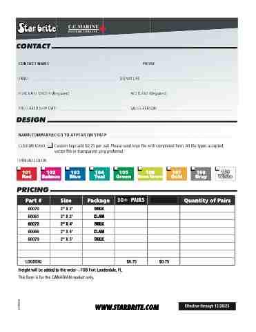 Freight will be added to the order—FOB Fort Lauderdale, FL This form is for the CANADIAN market only.