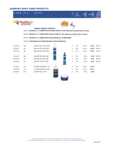 SPIFF A: RECEIVE $10.00 CREDIT SPIFF ON ANY CASE OF 10 OZ. Elastomeric Sealant (Up to 5 Cases) SPIFF B: RECEIVE $5.00 CREDIT SPIFF ON ANY CASE OF 3 OZ. Elastomeric Sealant (Up to 5 Cases) SPIFF C: RECEIVE $2.00 CREDIT SPIFF PER CASE ON ALL OTHER CASES SPIFF D: PURCHASE 20-39 CASES RECEIVE A FREE 108 DISPLAY