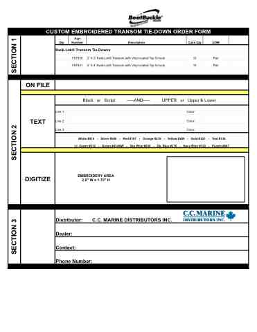 CUSTOM EMBROIDERED TRANSOM TIE-DOWN ORDER FORM