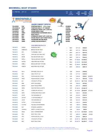 BOAT RACK,STERN S/D.STOR.RACK,4-UNITS STERN DR.JACK,SD-3 STERN DRIVE RACK,SDR1 TOP W/SCREW,27'' V-TOP,W/SCREW,27'' TOP,W/SCREW,23'' V-TOP,PONTOON PAD,GEL,W /FASTENERS STAGING LADDER,8' SAFETY CHAIN,3/16''X12' DOLLY,SHRINKW RAP BOAT DOLLY,BD2 PONTOON DOLLY,PD3 HYD.BOAT LIFT,BL8