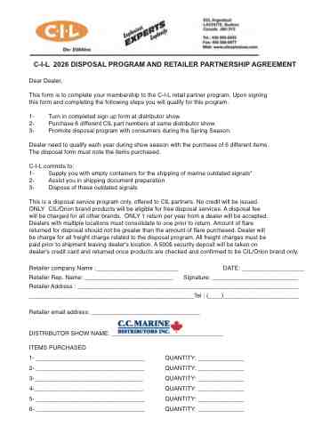 C-I-L 2026 DISPOSAL PROGRAM AND RETAILER PARTNERSHIP AGREEMENT