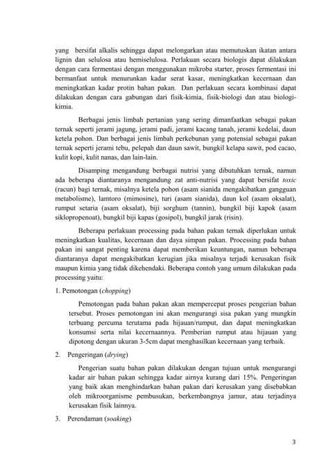 tersebut. Proses pemotongan ini akan mengurangi sisa pakan yang mungkin