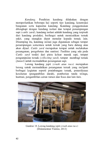 lorong untuk memudahkan penanganan ternak yang meliputi