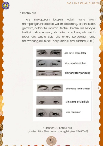 berikut : alis menurun, alis datar atau lurus, alis terlalu