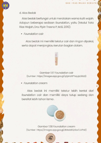 Adapun beberapa sediaan foundation, yaitu (Modul Tata