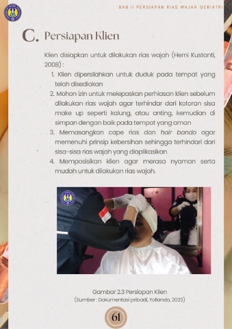 Klien disiapkan untuk dilakukan rias wajah (Herni Kustanti,