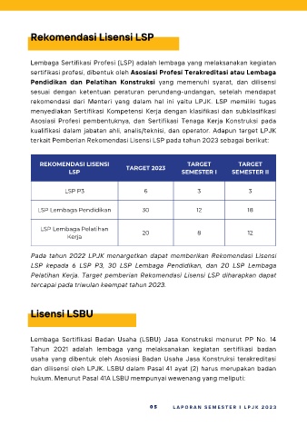 rekomendasi dari Menteri yang dalam hal ini yaitu LPJK. LSP memiliki tugas