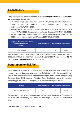 2023, LPJK telah memberikan sebanyak 3 Lisensi LSBU atau sebesar 50,0%