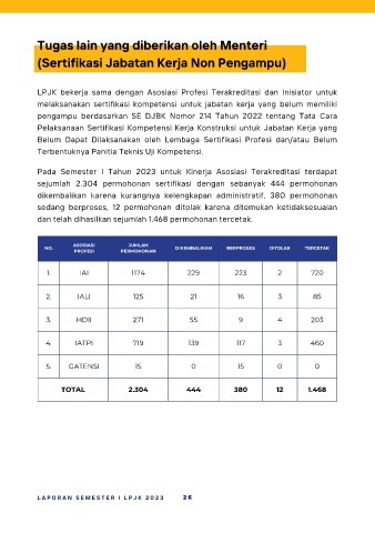 Pada Semester I Tahun 2023 untuk Kinerja Asosiasi Terakreditasi terdapat