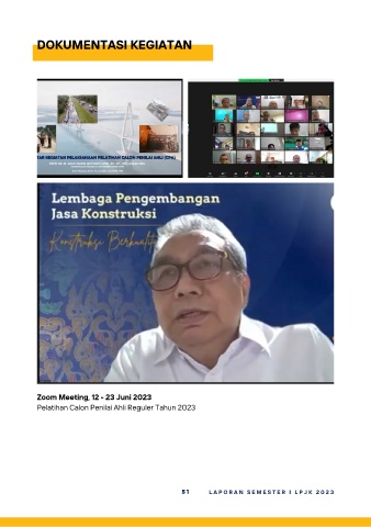 DOKUMENTASI KEGIATAN Zoom Meeting, 12 - 23 Juni 2023 Pelatihan Calon Penilai Ahli Reguler Tahun 2023 5 1 L A P O R A N S E M E S T E R I L P J K 2 0 2 3