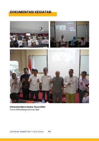 DOKUMENTASI KEGIATAN Universtas Mercu Buana, 15 juni 2023 Forum PKB Bidang Keilmuan Sipil L A P O R A N S E M E S T E R I L P J K 2 0 2 3 5 2