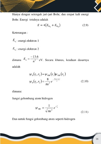 Dan untuk fungsi gelombang atom seperti hidrogen