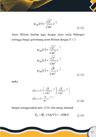 sehingga fungsi gelombang atom Helium dengan Z = 2