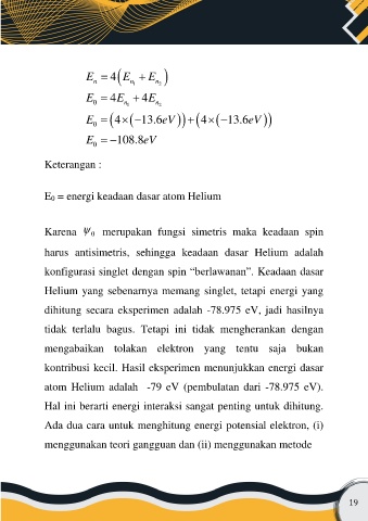 harus antisimetris, sehingga keadaan dasar Helium adalah