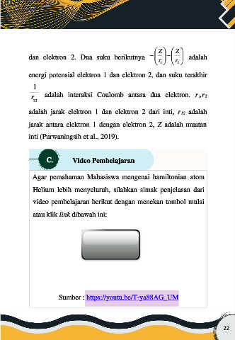 energi potensial elektron 1 dan elektron 2, dan suku terakhir