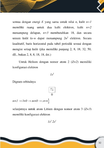 semua dengan energi E yang sama untuk nilai n, kulit n=1