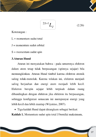 dalam atom tetap tidak berpasangan (spinnya sejajar) bila
