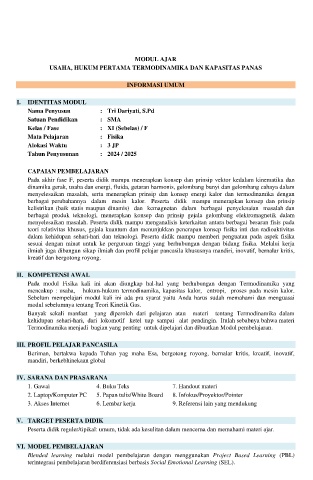 Pada modul Fisika kali ini akan diungkap hal-hal yang berhubungan dengan Termodinamika yang