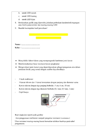 Ukur resistansi masing-masing kawat kemudian tuliskan hasilnya pada tabel