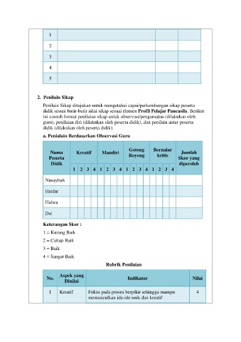 ini contoh format penilaian sikap untuk observasi/pengamatan (dilakukan oleh