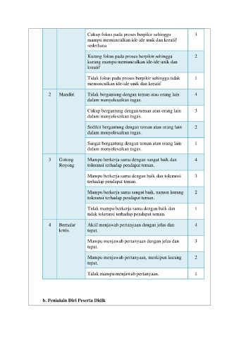 3 Gotong Mampu berkerja sama dengan sangat baik dan 4