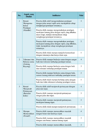 1 Berani Peserta didik aktif mengemukakan pendapat 4