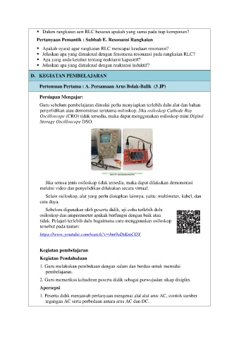 Pertanyaan Pemantik : Subbab E. Resonansi Rangkaian