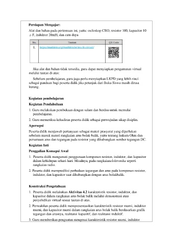 1. Peserta didik melakukan Aktivitas 4.2 karakteristik resistor, induktor, dan