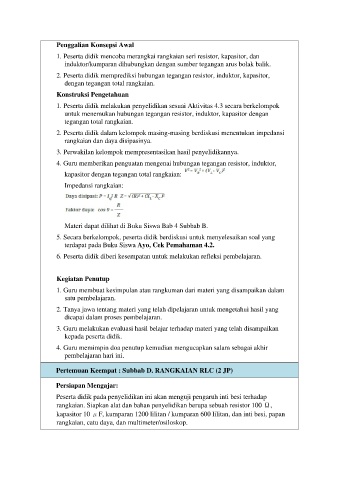 1. Peserta didik mencoba merangkai rangkaian seri resistor, kapasitor, dan