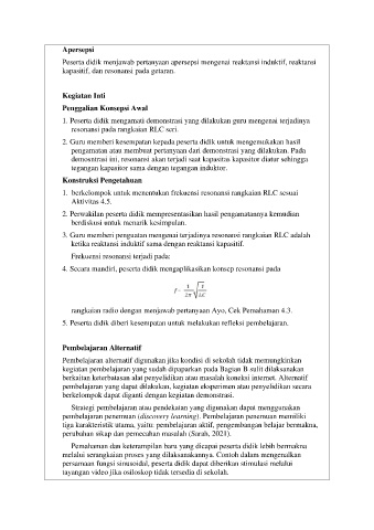 3. Guru memberi penguatan mengenai terjadinya resonansi rangkaian RLC adalah
