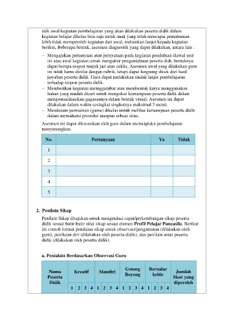 dapat berupa respon tunjuk jari atau ceklis, Asesmen awal yang dilakukan guru