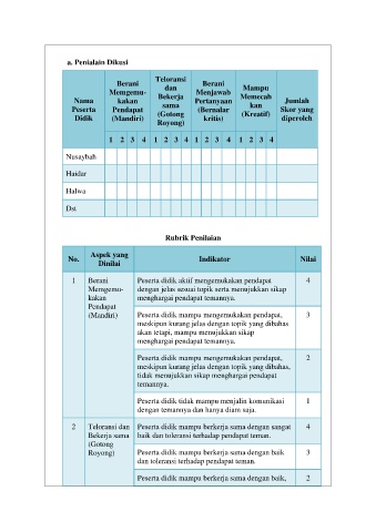 1 Berani Peserta didik aktif mengemukakan pendapat 4