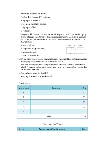 9V, 50Hz. Jika hasil pengukuran tegangan ujung-ujung resistor sebesar VR =