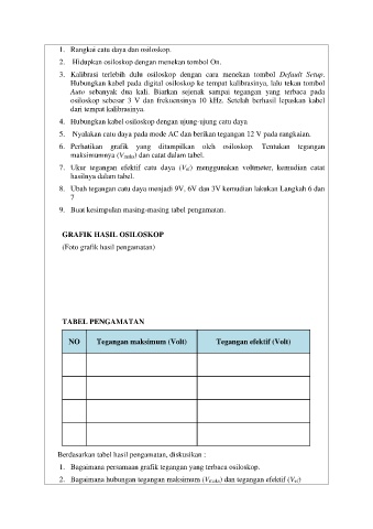 7. Ukur tegangan efektif catu daya (Vef) menggunakan voltmeter, kemudian catat