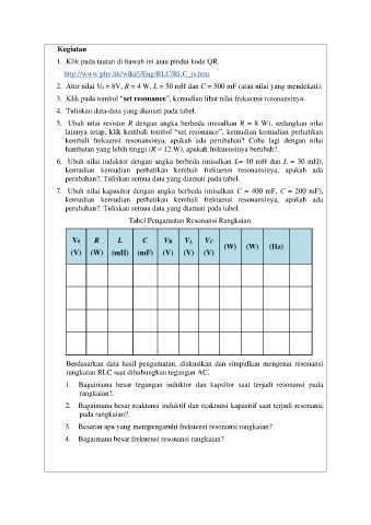 1. Bagaimana besar tegangan induktor dan kapsitor saat terjadi resonansi pada