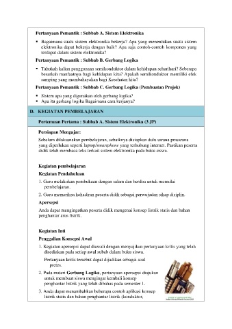 2. Pada materi Gerbang Logika, pertanyaan apersepsi diajukan