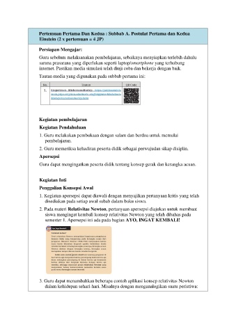 siswa mengingat kembali konsep relativitas Newton yang telah dibahas pada