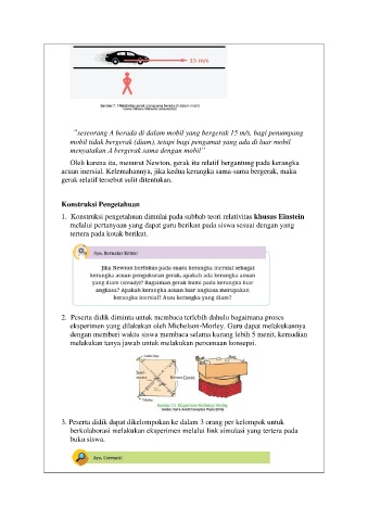 eksperimen yang dilakukan oleh Michelson-Morley. Guru dapat melakukannya