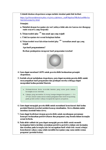 postulat Einstein tersebut melalui konsep simultanitas. Siswa diminta untuk