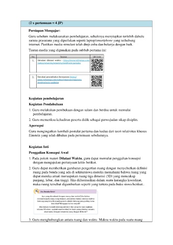 1. Pada pokok materi Dilatasi Waktu, guru dapat memulai penggalian konsepsi
