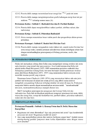 Pertemuan Kedua : Subbab C. Radioaktivitas dan D. Partikel Radiasi