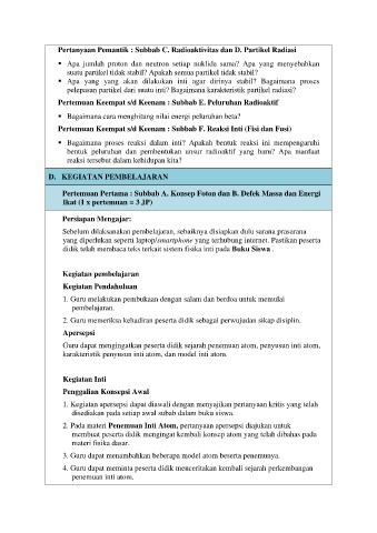 2. Pada materi Penemuan Inti Atom, pertanyaan apersepsi diajukan untuk