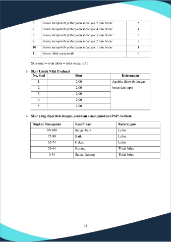 4. Skor yang diperoleh dengan penilaian acuan patokan (PAP) berikut.