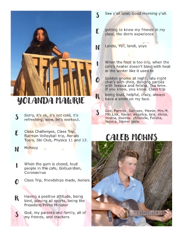 Tours, Ski Club, Physics 11 and 12. CALEB MOHNS