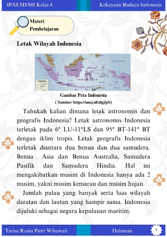 terletak pada 6° LU-11°LS dan 95° BT-141° BT